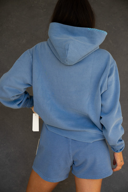 Essential Ocean Blue Cotton Hoodie