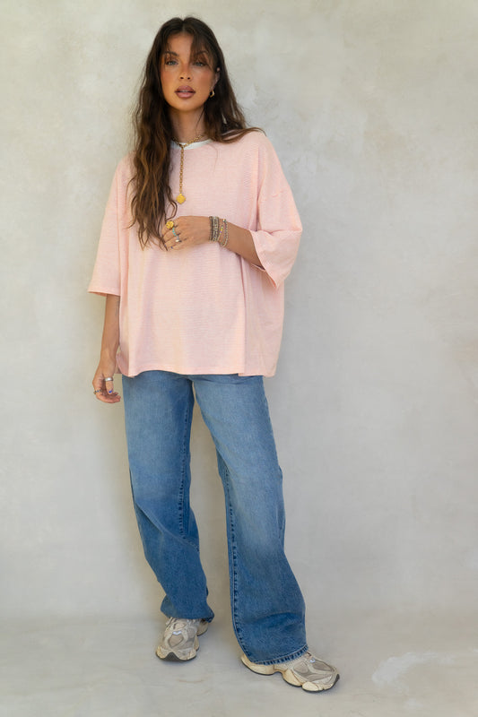 Oversized Orange Striped Boyfriend Tee