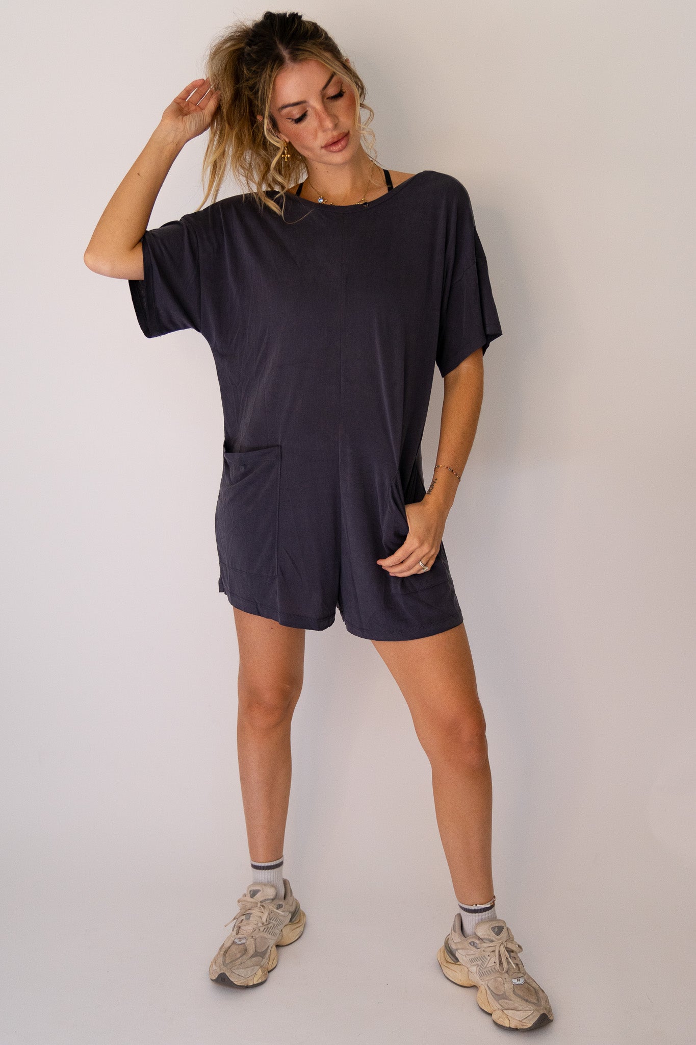 FP Dupe! This jersey knit romper is EVERYTHING! So soft, so stretchy and very high quality. Features V neck back and pockets