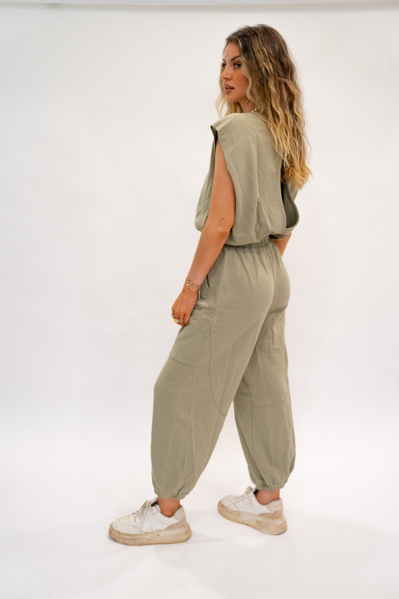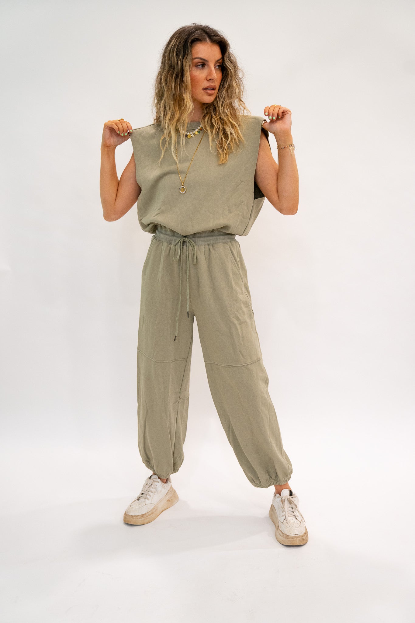 FP DUPE! You are going to live in this! So soft, so comfortable and high quality! This jumpsuit features an open back with button closure, round neck, is sleeveless, drawstring waist and pockets!