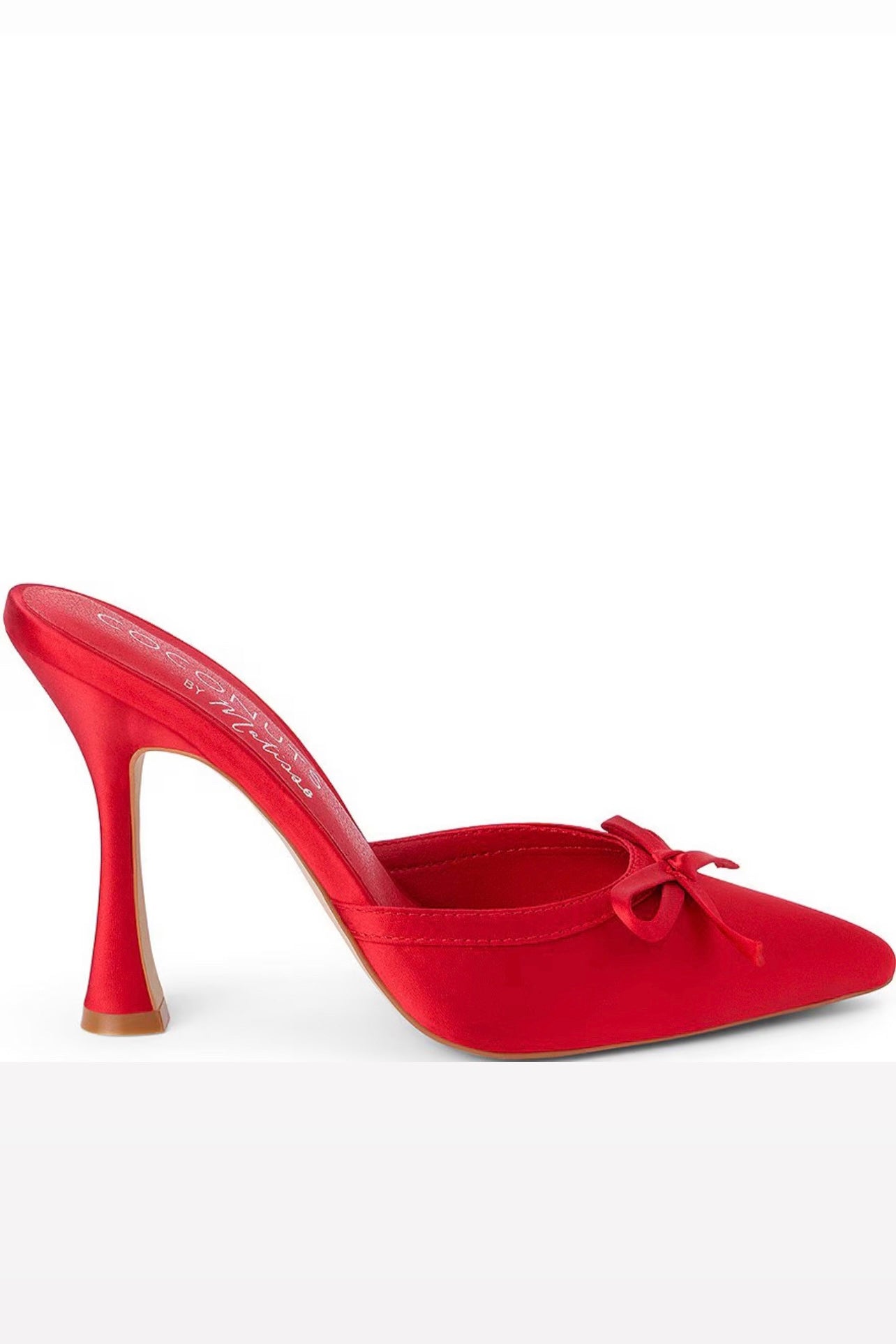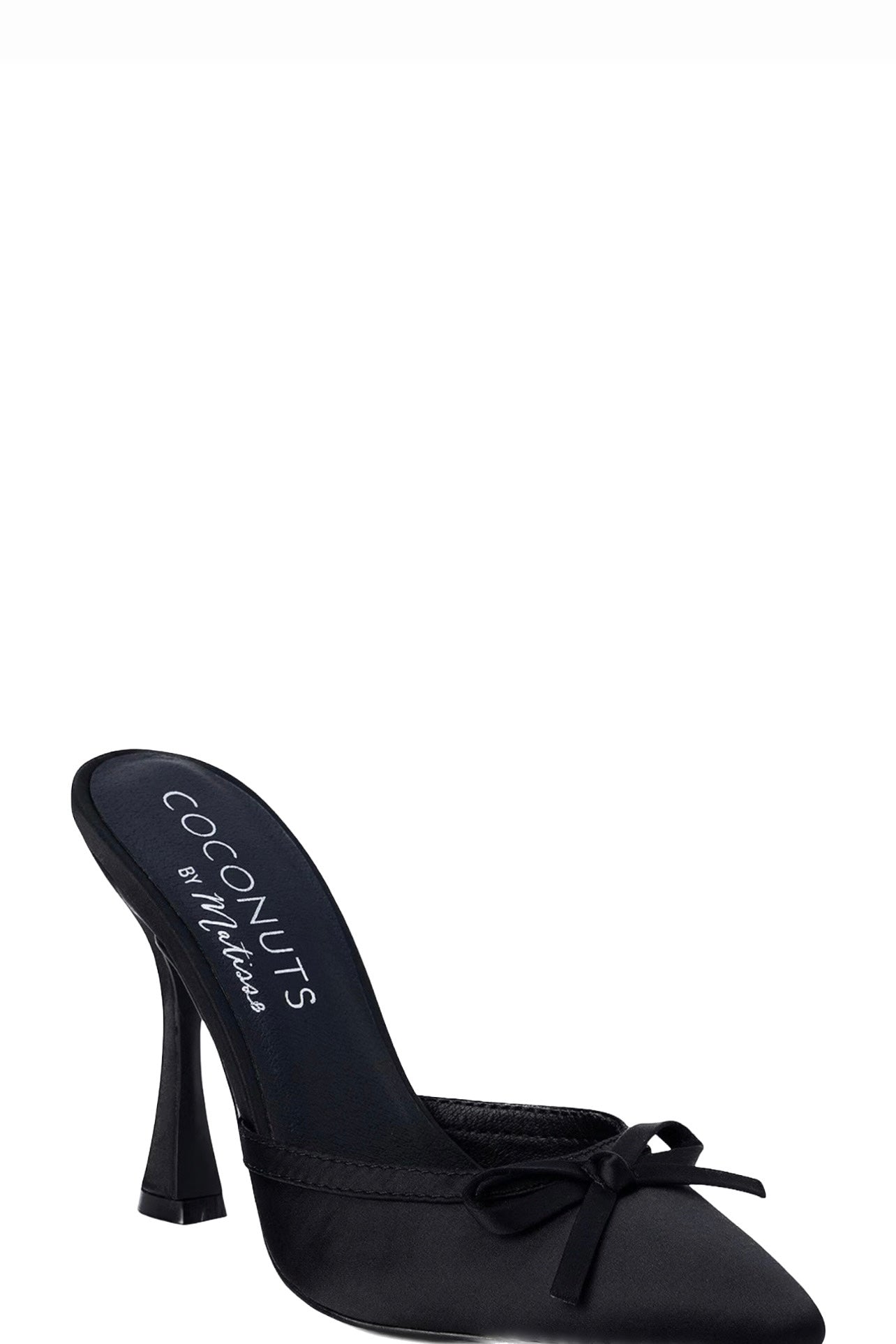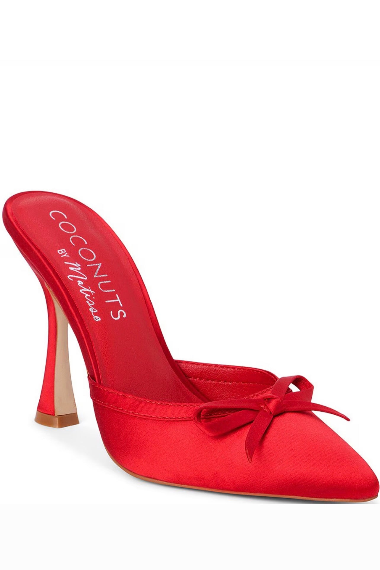 From Matisse, the Instinct Satin Bow Mules feature: