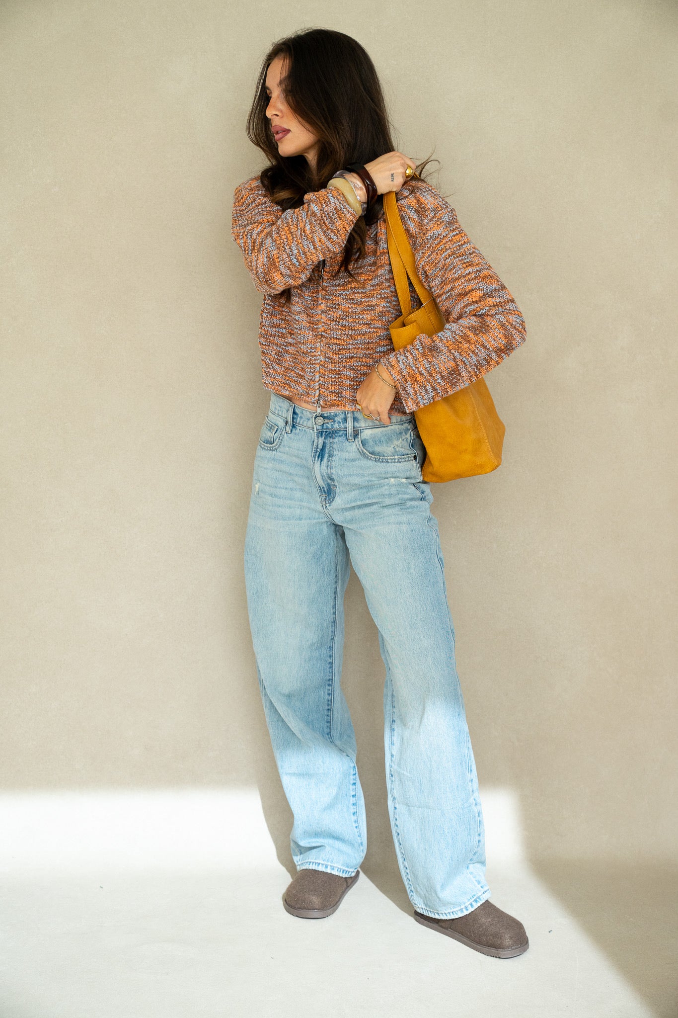 The PERFECT moody fall knit zip up with 2 way zipper and collar detail.