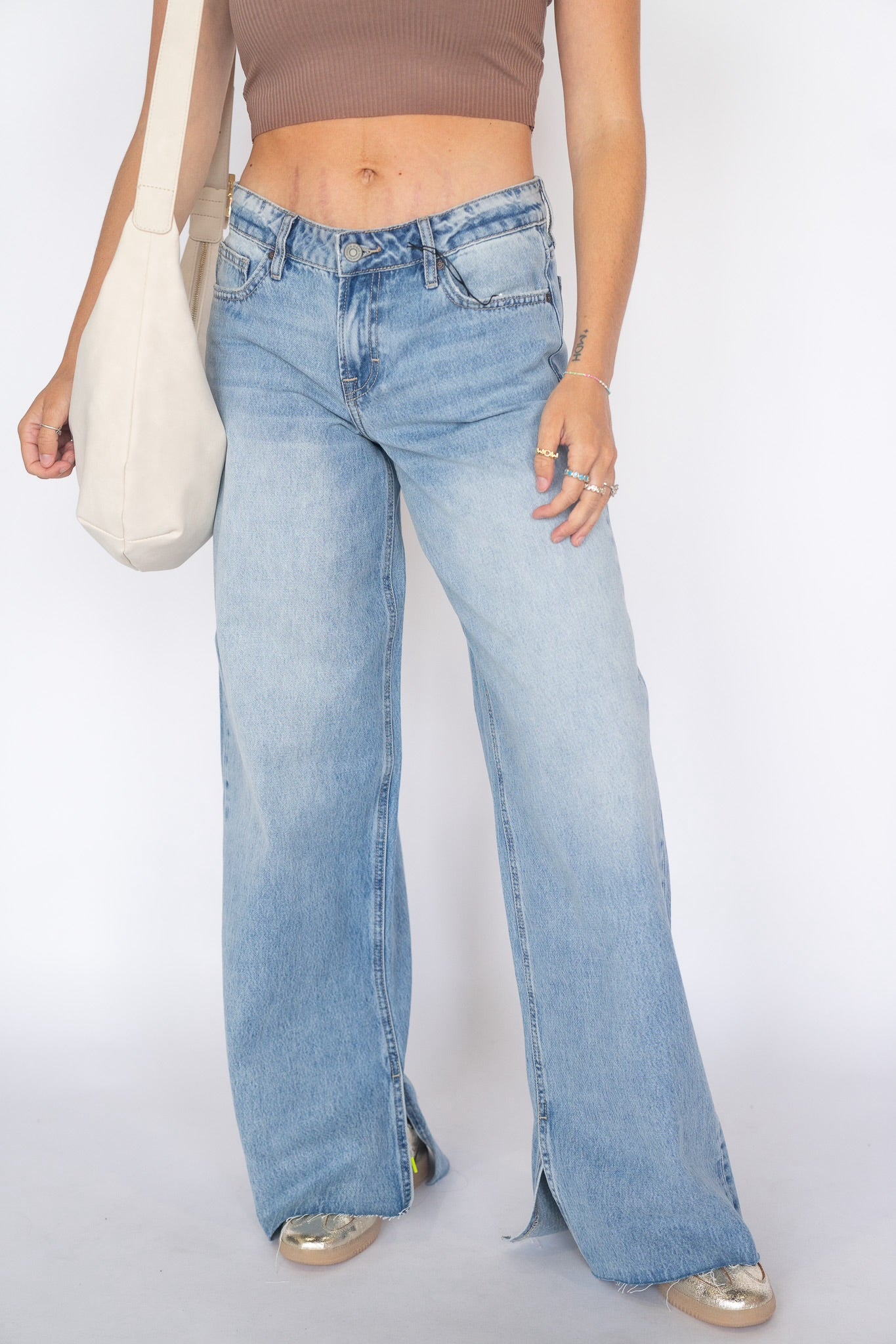 Non-stretch, but not stiff! Curved fit, mid rise on the hips and lower rise in the front giving a flattering figure look. Still very soft despite being non-stretch!