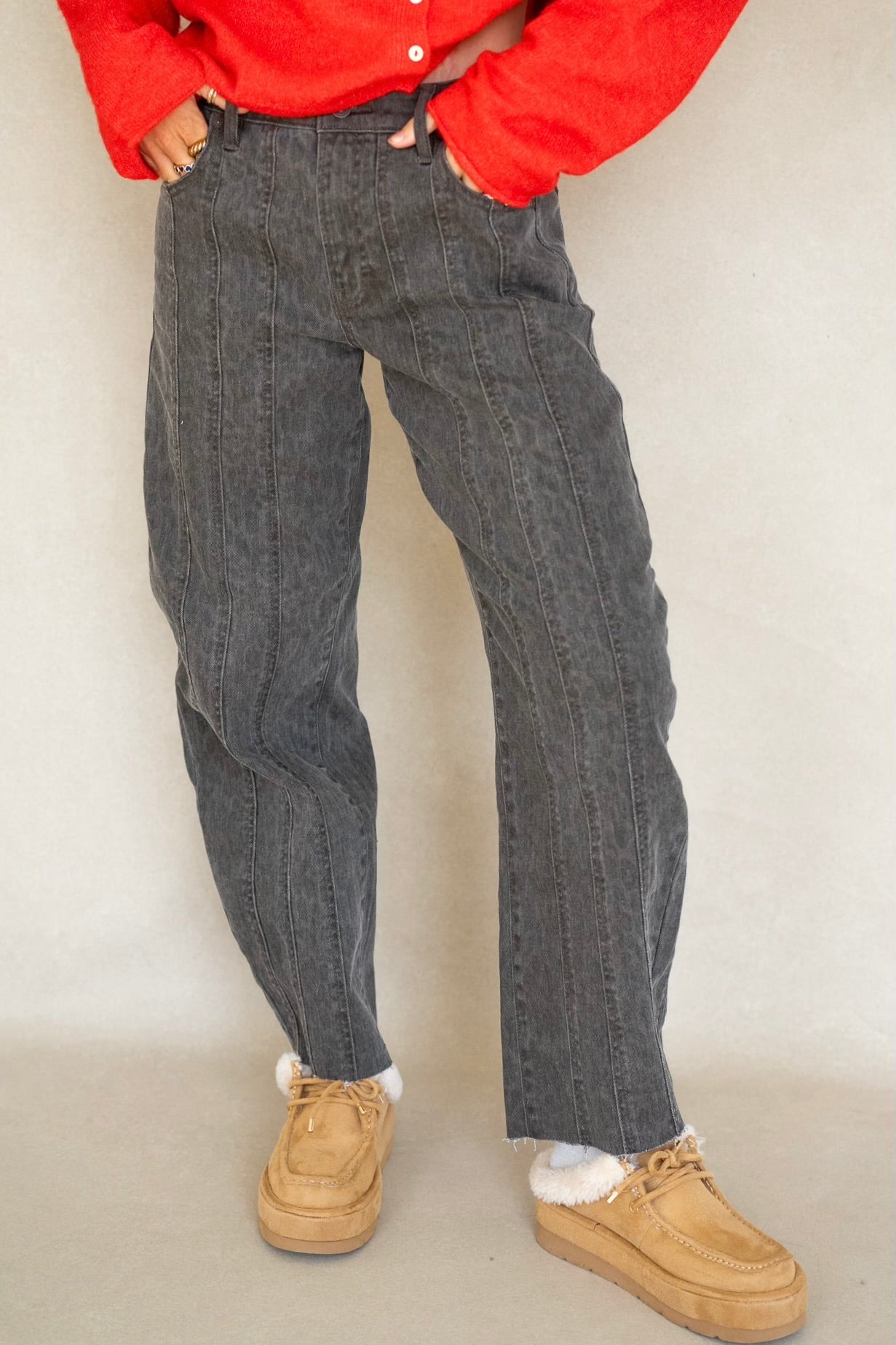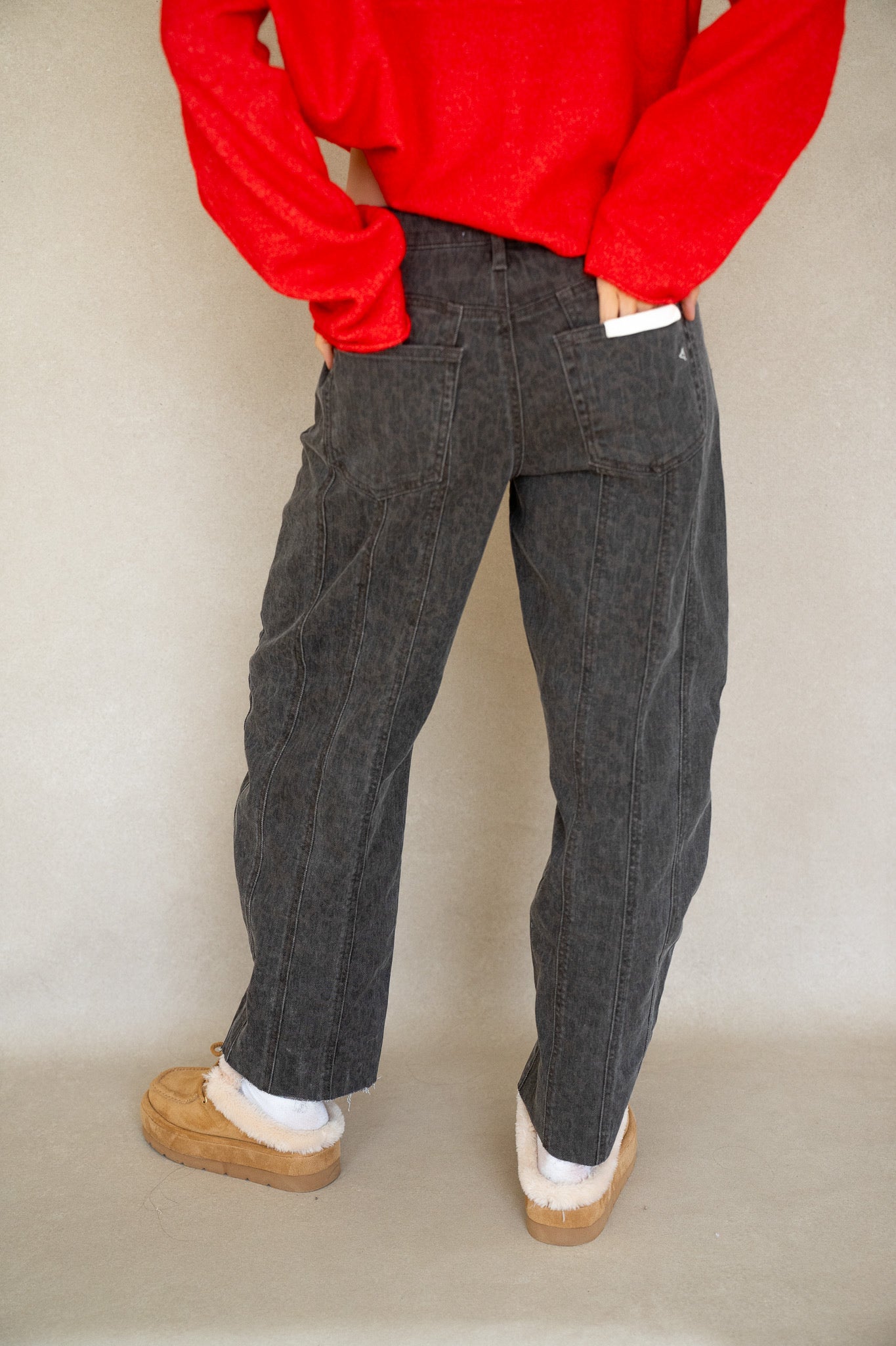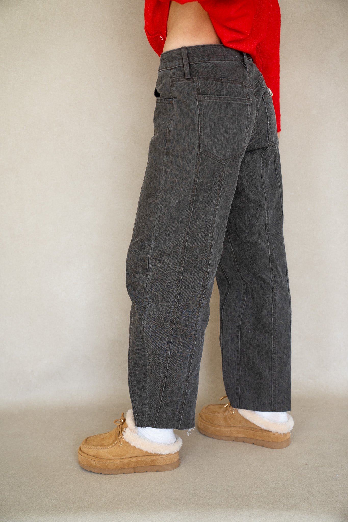 - these barrel jeans feature a faded wash leopard print and seam detailing for a modern edge.