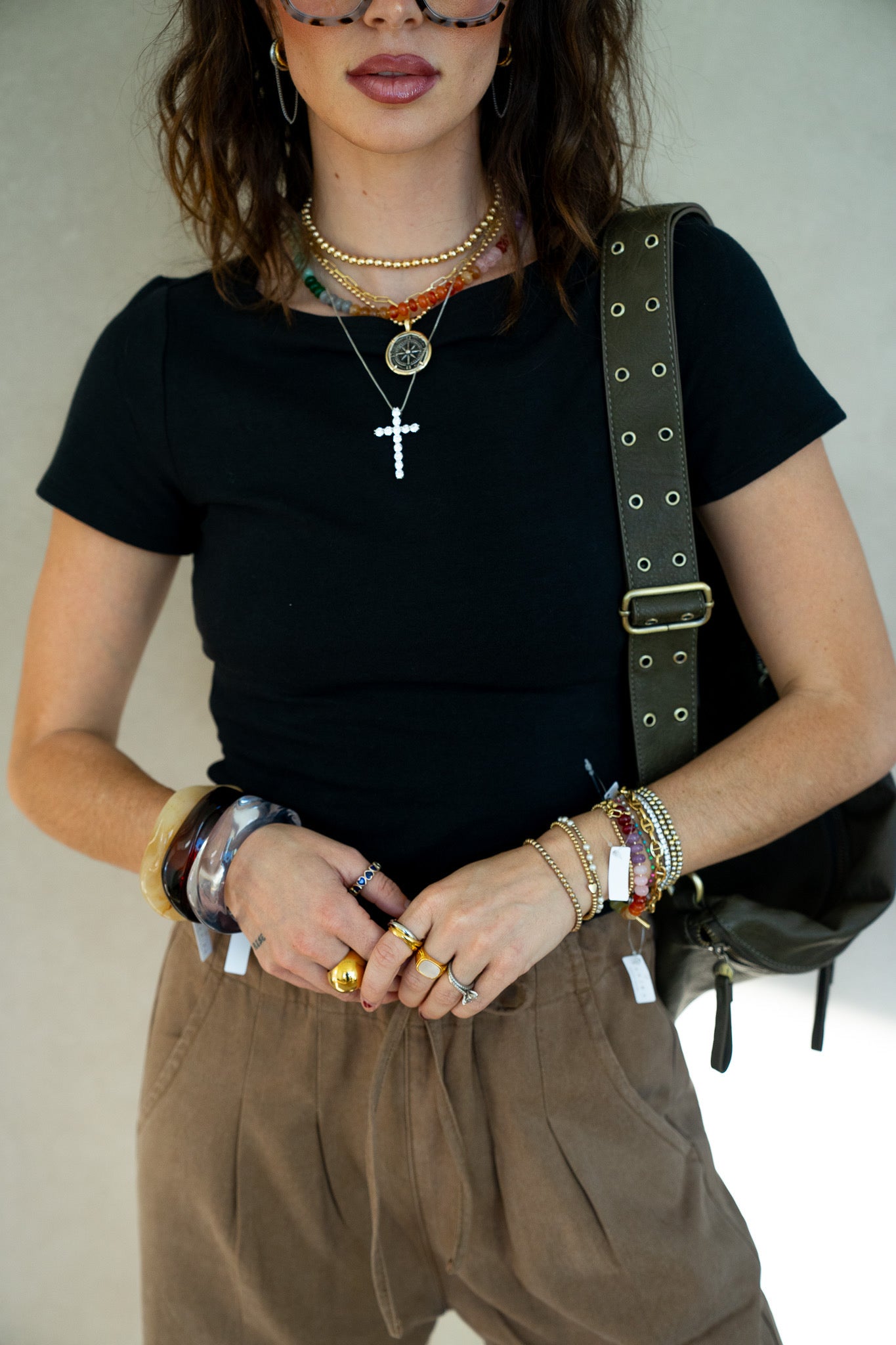 The MUST HAVE ESSENTIAL TEE! So incredibly soft, amazing fit, and great quality. Trust us when we say you are going to want them all!