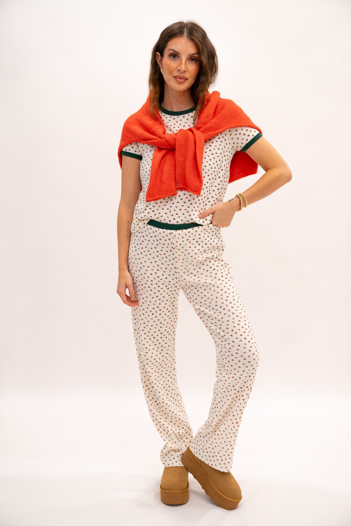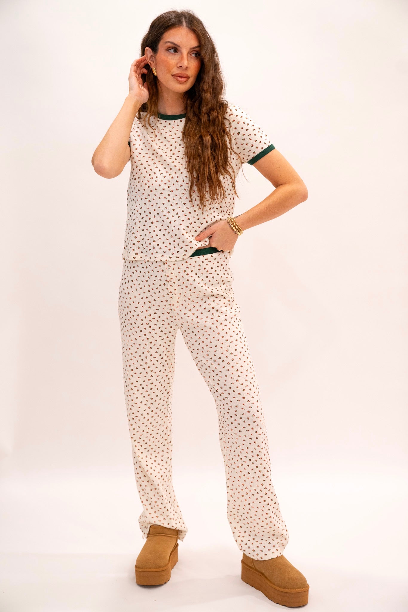 This cozy, cotton set is your new fall dream! The comfy trend that can be worn so many ways. Very stretchy, top features capped sleeves, and pants